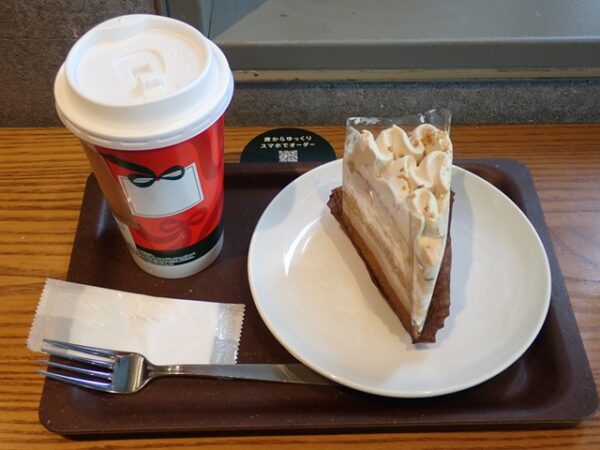 コーヒー フラペチーノと季節のおすすめのホワイトモカケーキです。