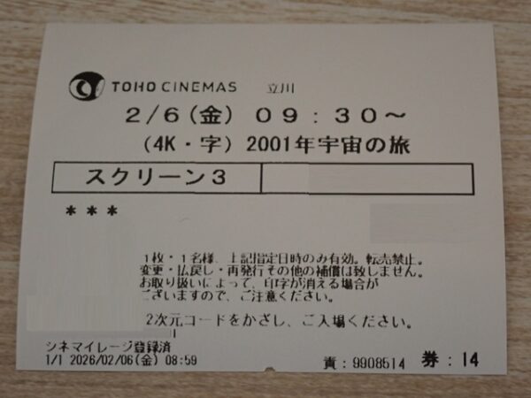 予定を変更して、TOHOシネマズ立川立飛で午前十時の映画祭2025で上映されている映画「2001年宇宙の旅」を鑑賞してきました。