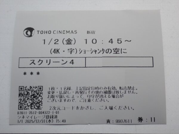午前十時の映画祭2025で上映されている映画「ショーシャンクの空に」と公開された映画「ワーキングマン」を鑑賞することにしました。
