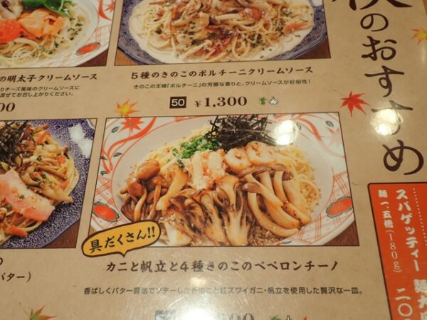 秋のメニューはもうすぐ終わりなので、食べたい人は早く洋麺屋五右衛門で期間限定メニューを食べると良いでしょう。