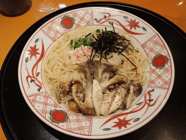 洋麺屋五右衛門で期間限定「具だくさん!!カニと帆立と4種きのこのペペロンチーノ」を食べてきました。