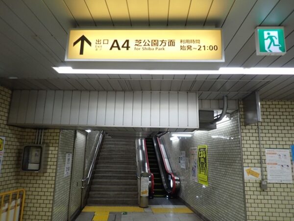 都営三田線・芝公園駅の出口A4から東京タワーへ向かいます。