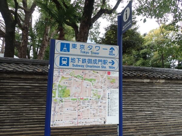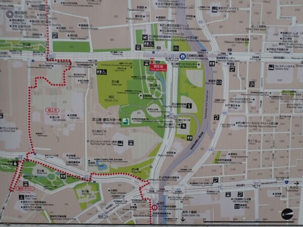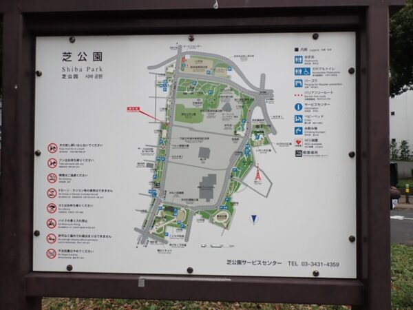 芝公園の前にも地図があるので東京タワーまで道のりを確認します。