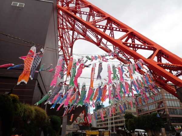 東京タワーには、鯉のぼりが展示されていました。