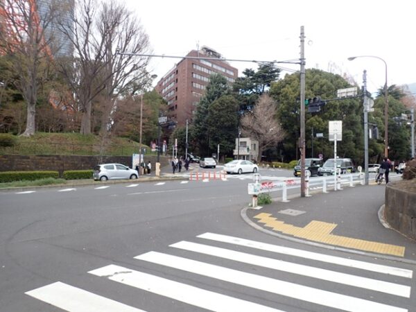 東京タワー前の交差点を渡って、左手に見えている東京タワーに向かいます。