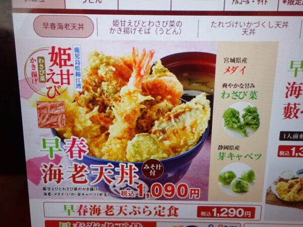 天丼てんやで期間限定「早春海老天丼」を食べてきました! 公開日:2026年2月18日 期間限定メニュー 天丼てんやで期間限定「早春海老天丼」をとん汁に変更して、食べてきました。 天丼てんやです。 メニューです。 早春海老天丼ととん汁です。 天丼てんや 面白いと思った方は、クリックして、応援してね! タグ 期間限定 天丼てんや 関連記事 焼肉ライクで11月29日の「常陸牛」を食べてきました!なか卯で期間限定「山かけ天然本まぐろ丼(並盛)」を食べてきました!焼肉ライクで期間限定「肉の日」キャンペーンを食べてきました!大戸屋で期間限定「炭火焼きチキンのマスタードクリームソース」を食べてきました!洋麺屋五右衛門で期間限定「広島産牡蠣と海老とブロッコリーのペペロンチーノ(大盛)」を食べてきました!松のやで期間限定「極厚レアヒレかつ定食&豚汁」を食べてきました! 投稿ナビゲーション すき家で期間限定「いくらまぐろたたき丼」を食べてきました!