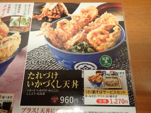 天丼てんやで期間限定「たれづけいかづくし天丼」を食べてきました! 公開日:2026年3月3日 期間限定メニュー 天丼てんやで期間限定「たれづけいかづくし天丼」をとん汁に変更して、食べてきました。 天丼てんやです。 メニューです。 たれづけいかづくし天丼ととん汁です。 天丼てんや 面白いと思った方は、クリックして、応援してね! タグ 期間限定 天丼てんや 関連記事 やよい軒で期間限定「【お肉2倍】すき焼き定食」を食べてきました!すき家で期間限定「いくらまぐろたたき丼」を食べてきました!なか卯で期間限定「天然いくら丼(豪快盛)」を食べてきました!シュークリーム専門店 ビアードパパ の秋限定のシュークリームを食べてきました!大戸屋で期間限定「大粒牡蠣フライ6個」と「なめこ汁」を食べてきました!焼肉ライクで「お肉50%増量」キャンペーンを食べてきました! 投稿ナビゲーション 焼肉ライクで期間限定「肉の日」キャンペーンを食べてきました!