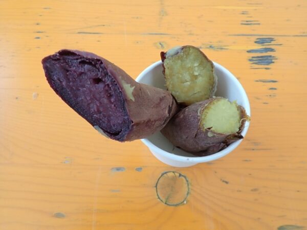 「紅天使」、「シルク天使」と「むらさき天使」の焼き芋3種食べ比べです。